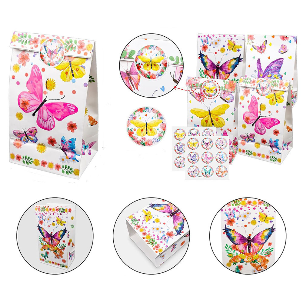 48-kusová Motýlia párty darčeková sada – Darčekové vrecúška, kľúčenky, náramky a nálepky na detské oslavy