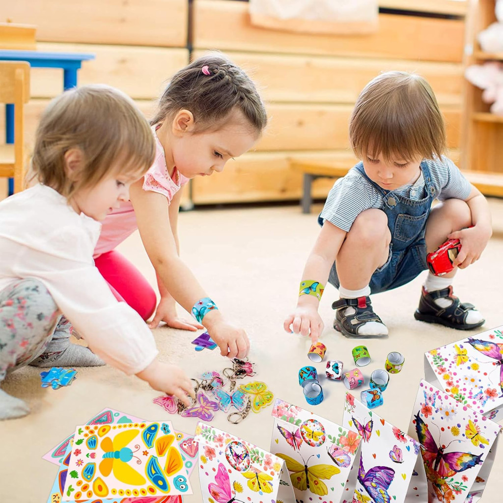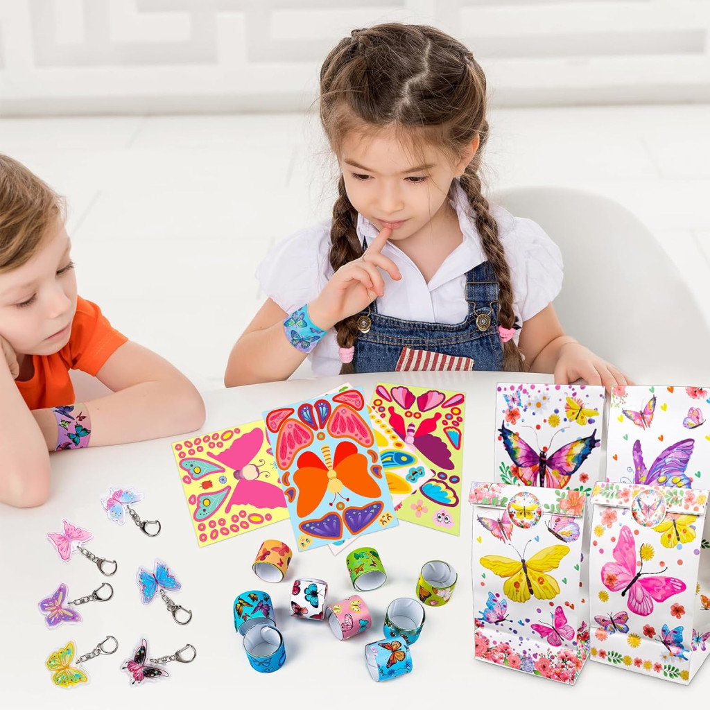 48-kusová Motýlia darčeková párty sada – Darčekové vrecúška, kľúčenky, náramky a nálepky
