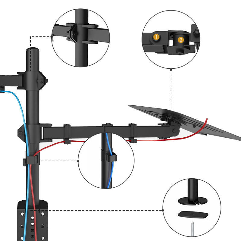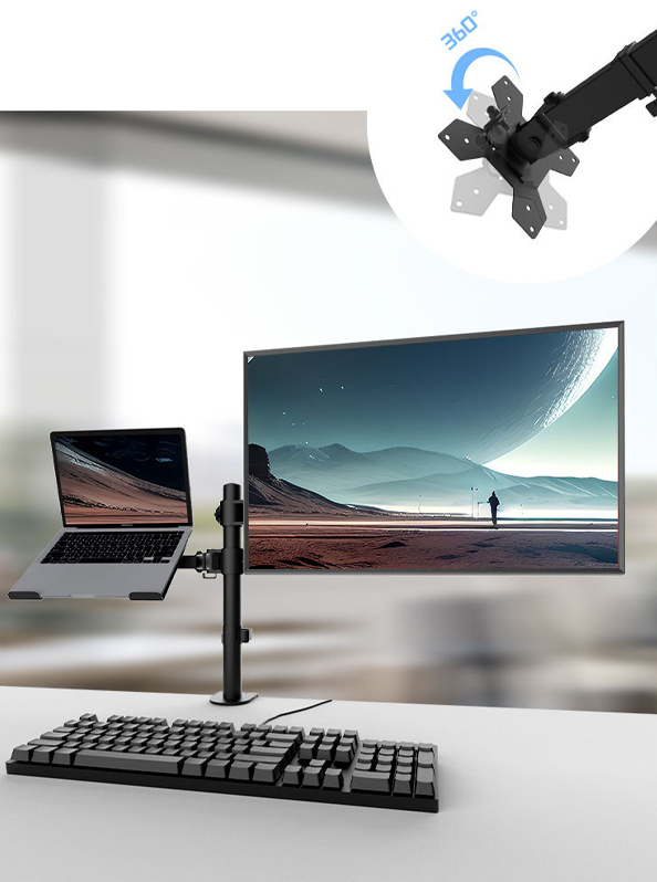 Maximálna kompatibilita Rameno výrobku podporuje displeje VESA 75x75/100x100 s uhlopriečkou do 32„ a hmotnosťou 8 kg, zatiaľ čo do podnosu sa zmestí akýkoľvek notebook s uhlopriečkou od 10“ do 17", tiež do 8 kg. Je ideálny pre menšie pracovné priestory, ako sú napríklad kancelárie, a poskytuje všetky potrebné funkcie, pričom zaberá málo miesta. Pomocou C-svorky ho možno namontovať na okraj stola, stolovej dosky alebo dosky s hrúbkou od 10 do 88 mm, takže nie je potrebné vŕtať diery do nábytku.