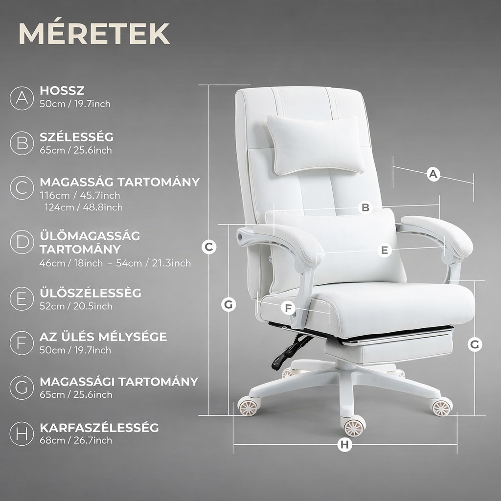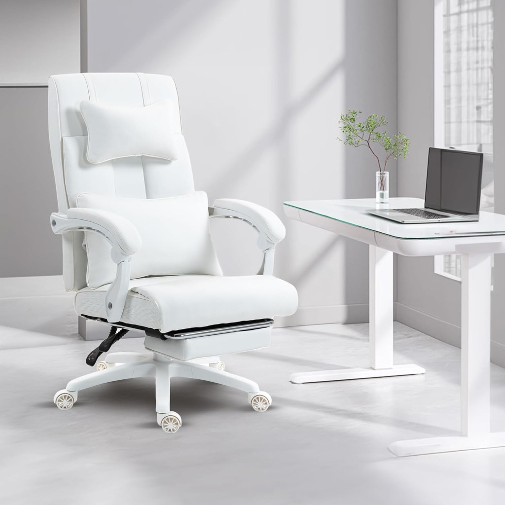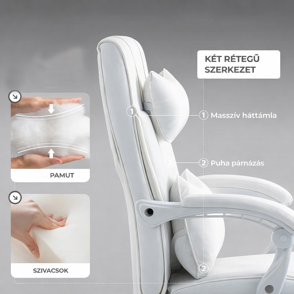 Dowinx manažérska stolička, biela – s opierkou nôh a nastaviteľnou bedrovou a opierkou hlavy