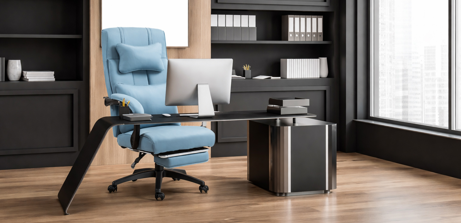 Manažérska stolička – s opierkou nôh, nastaviteľnou bedrovou a opierkou hlavy