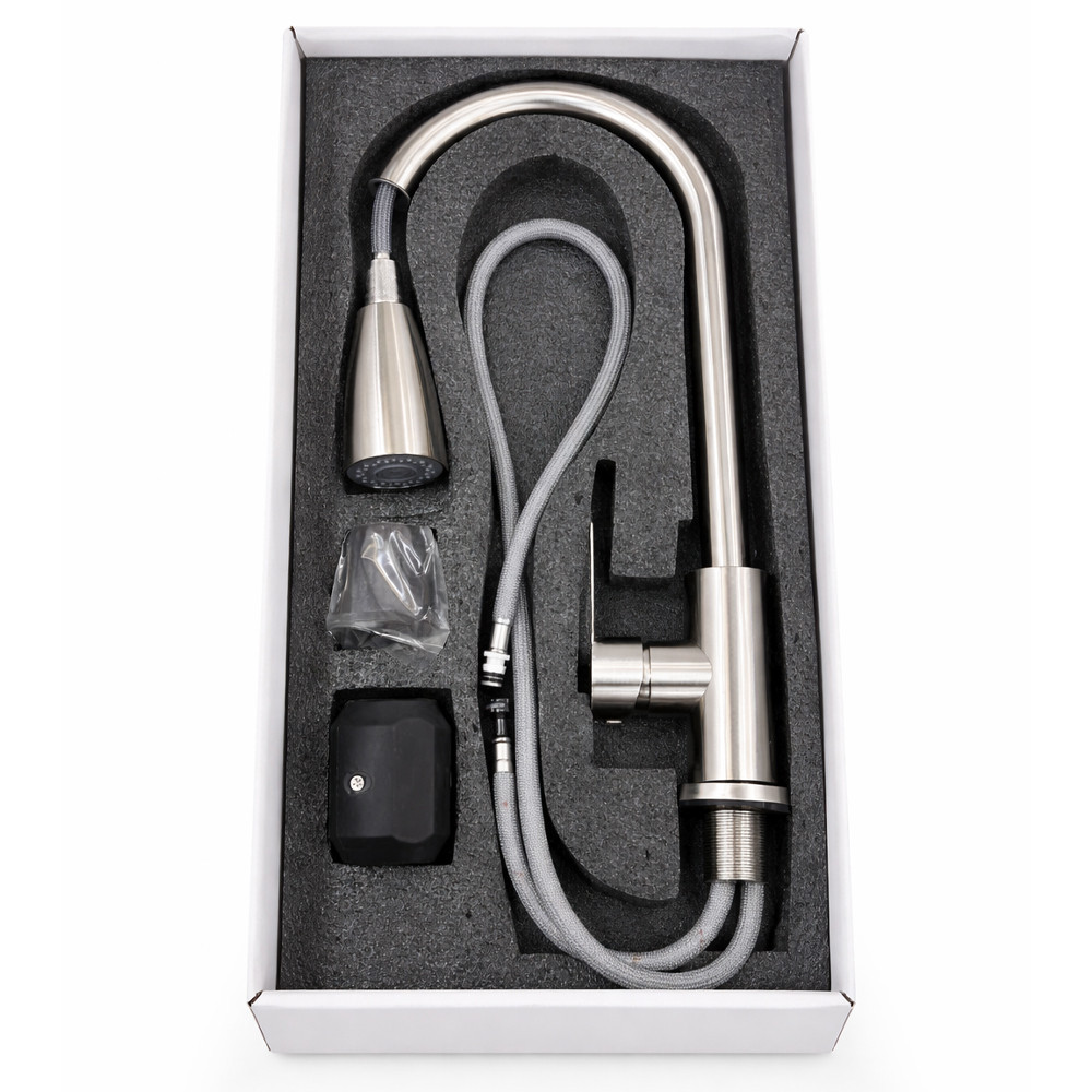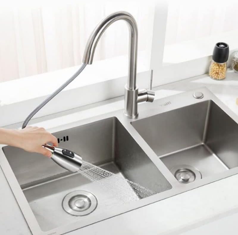 Výsuvná sprchová hlavica poskytuje väčšiu voľnosť pohybu pri umývaní riadu, uľahčuje čistenie nádob a oplachovanie celej plochy drezu. Pevná konštrukcia z nehrdzavejúcej ocele zaručuje dlhú životnosť a spoľahlivú prevádzku, pričom je odolná voči korózii a každodennému používaniu.