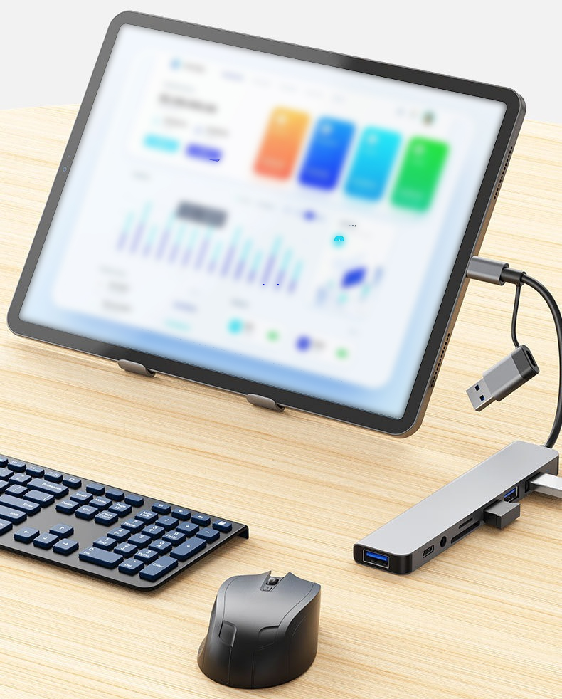 ento kompaktný a elegantne navrhnutý USB 3.0 / USB-C HUB je ideálnym riešením, ak chcete pripojiť viac zariadení naraz. Zariadenie ponúka 1× USB 3.0 port, 3× USB 2.0 porty, USB-C dátový konektor, 3,5 mm audio výstup, ako aj čítačku SD a microSD (TF) kariet.